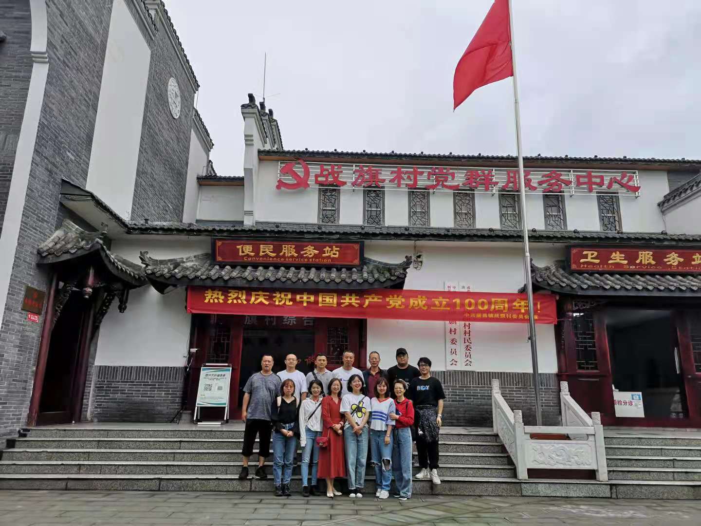 为庆祝即将到来的中国共产党成立100周年生日,开展好党史学习教育,深入领会“乡村振兴战略”,跟随习总书记到川考察步伐,6月25日,资产管理处党支部等13名人员到郫都区战旗村参观学习。