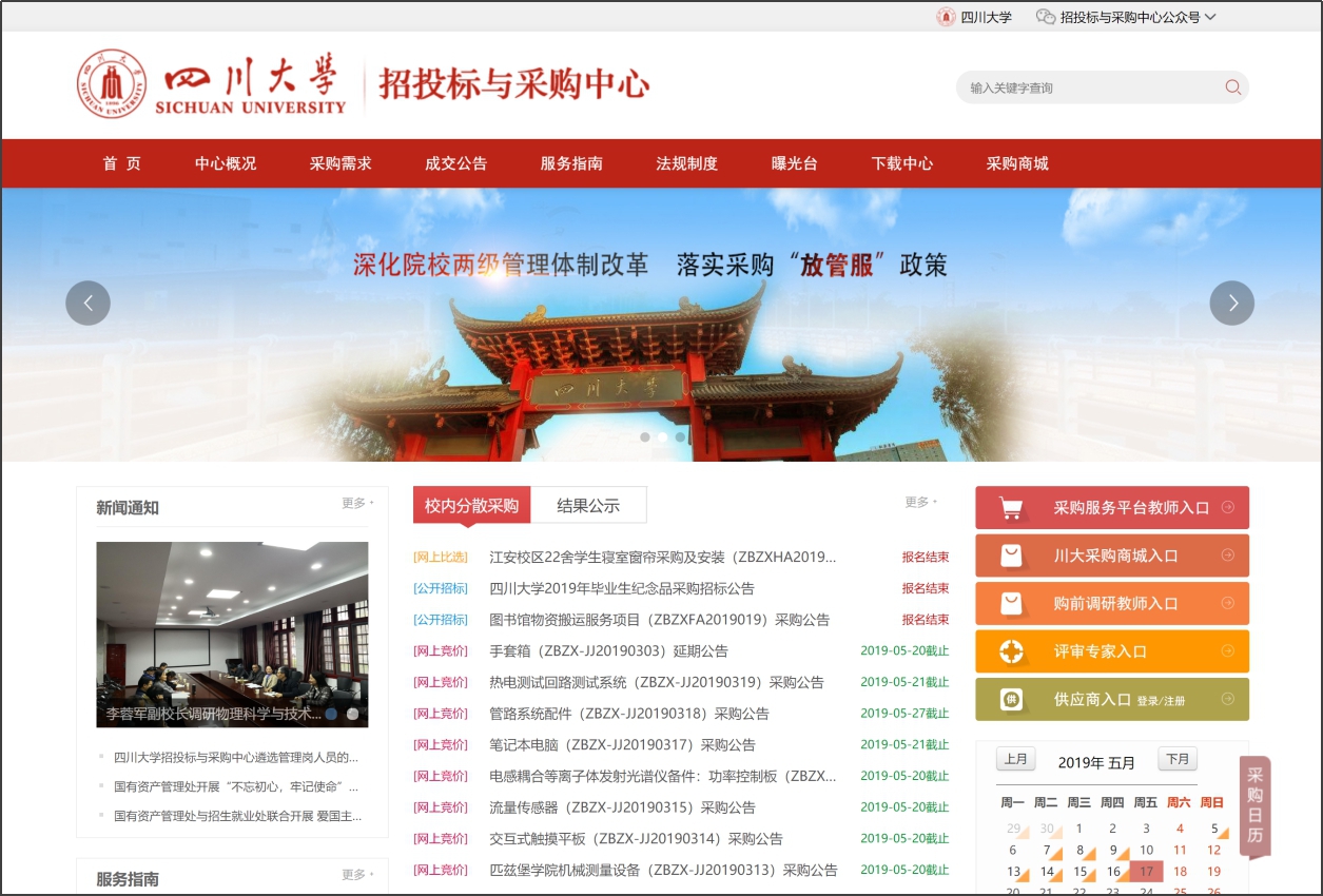 为配合“太阳成集团tyc122cc校院两级体制改革”、“采购放管服”等工作的要求,招投标与采购中心按照《太阳成集团tyc122cc分散采购实施细则(试行)》(川大国资[2019]9号)文件要求,推出了互联网+模式的“网上比选”采购交易通道,并制定了配套的管理和服务方案。“网上比选”采购方式,利用信息技术优势,优化采购程序,缩短采购周期(一般为3-5天),实现了采购报销前老师全程不跑腿。
