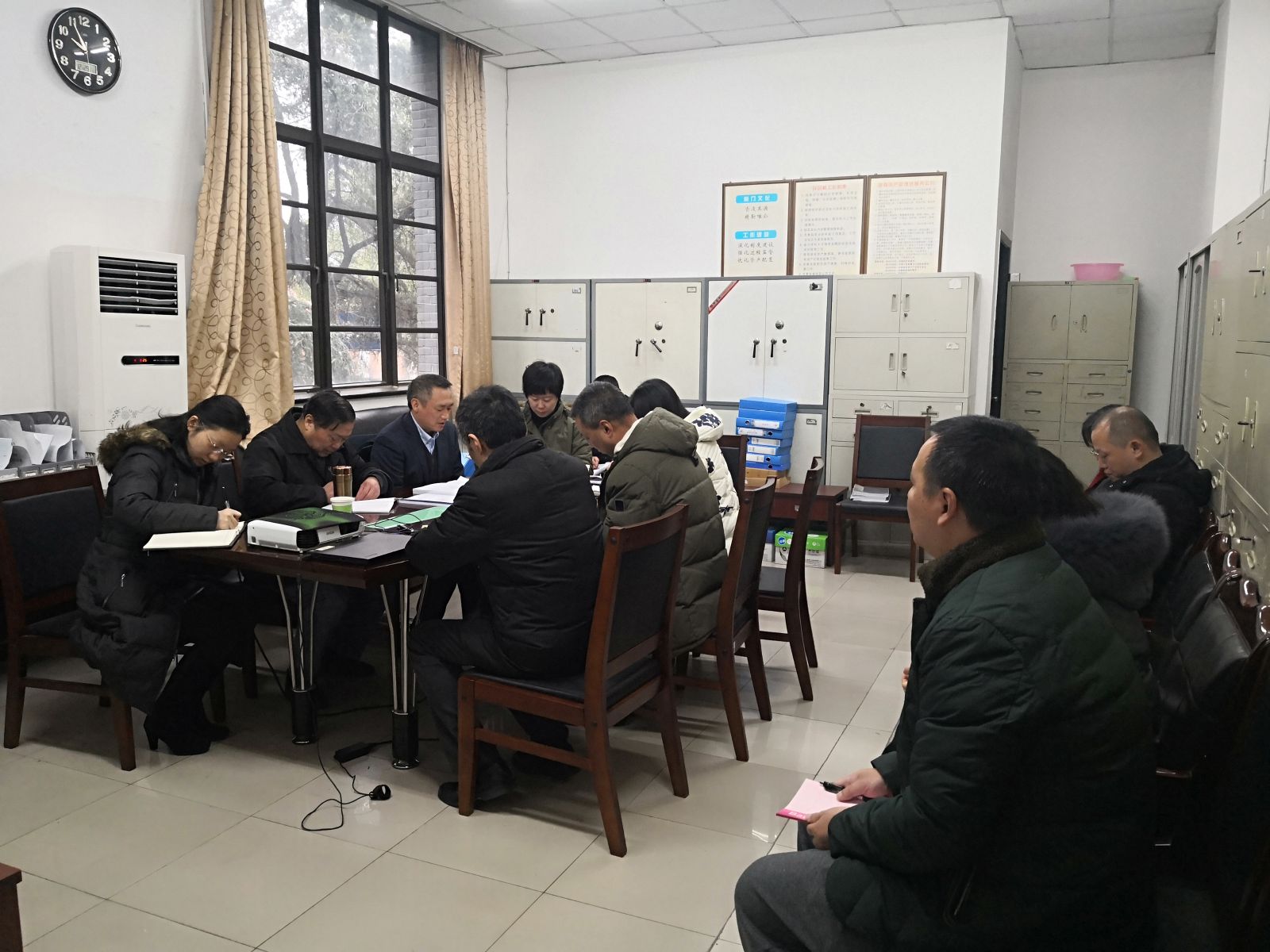 2018年12月29日上午,在明德楼254会议室, 学校年度工作考核现场检查考核工作组对国资处2018年的工作进行考核。现场检查考核工作组组长为李昌龙。国资处党支部书记樊庆文首先汇报了国资处2018年的主要工作,汇报内容包括年度工作情况、特色亮点工作以及不足之处及改进措施等三部分。现场考核工作组根据自查自评主要内容审阅相关档案资料,并与国资处工作人员进行了沟通交流。现场考核工作组对国资处处內工作督办机制等特色做法给予了肯定,并对国资处下一步工作提出了建设性意见。国资处支部委员及科级以上人员参加了座谈会。