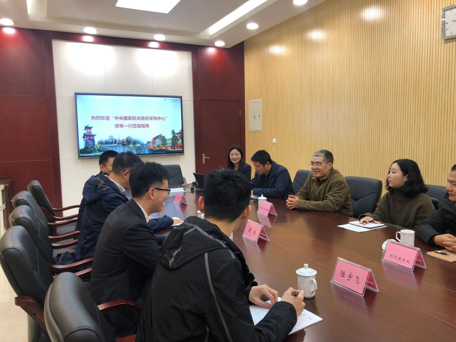 2018年11月14日上午,中央国家机关政府采购中心武文杰一行4人来太阳成集团tyc122cc国有资产管理处调研,国有资产管理处樊庆文处长、徐明副处长、何艳主任、后勤管理处邓益副处长、规划建设处姚向征副处长等出席座谈会。座谈会在望江校区行政楼二楼二会议室召开。