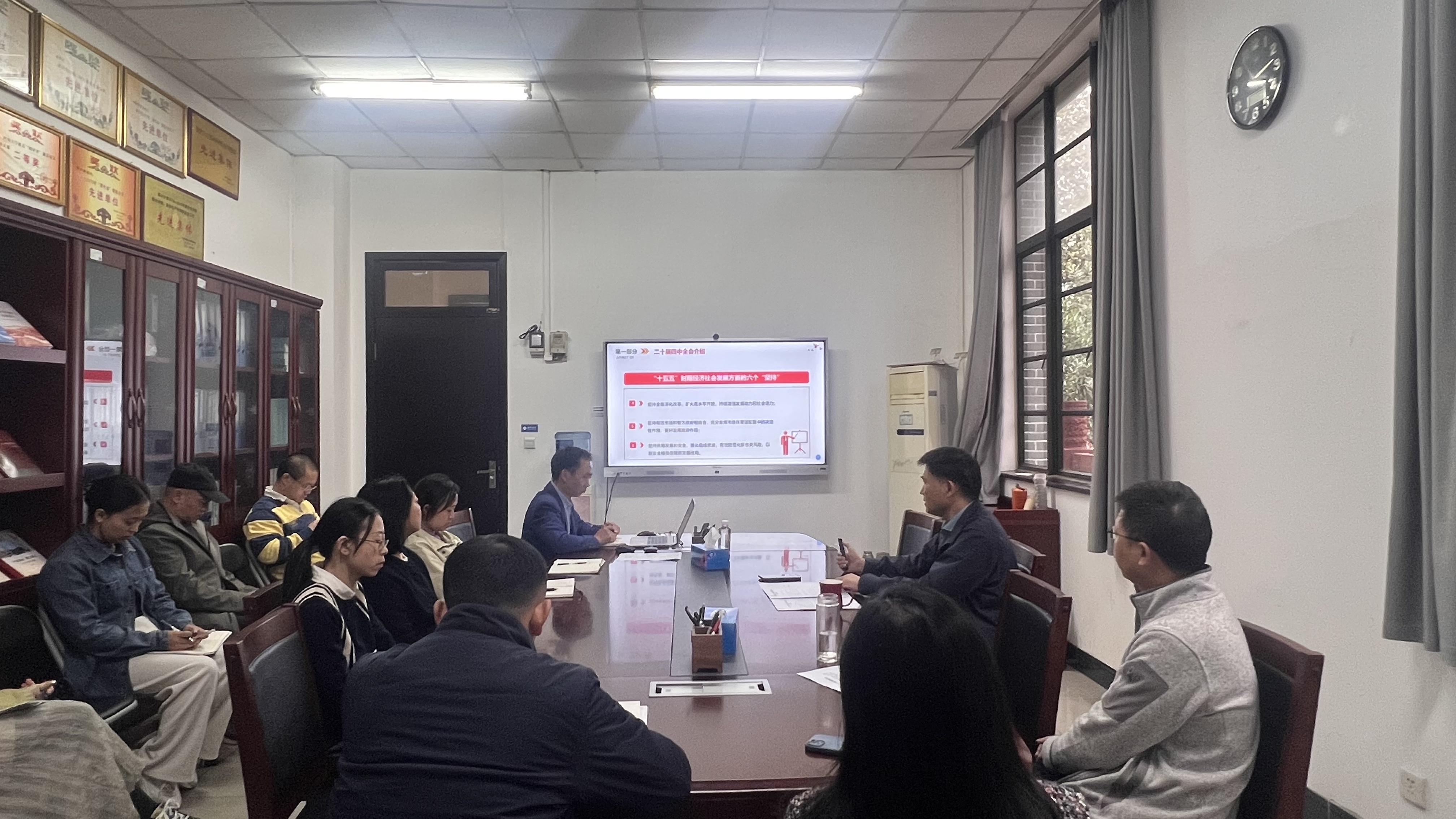 10月30日下午,122cc太阳集成游戏召开主题党日(扩大)学习会,传达学习党的二十届四中全会精神。会议由支部书记、处长颜锦江主持,全体党员教职工参会。